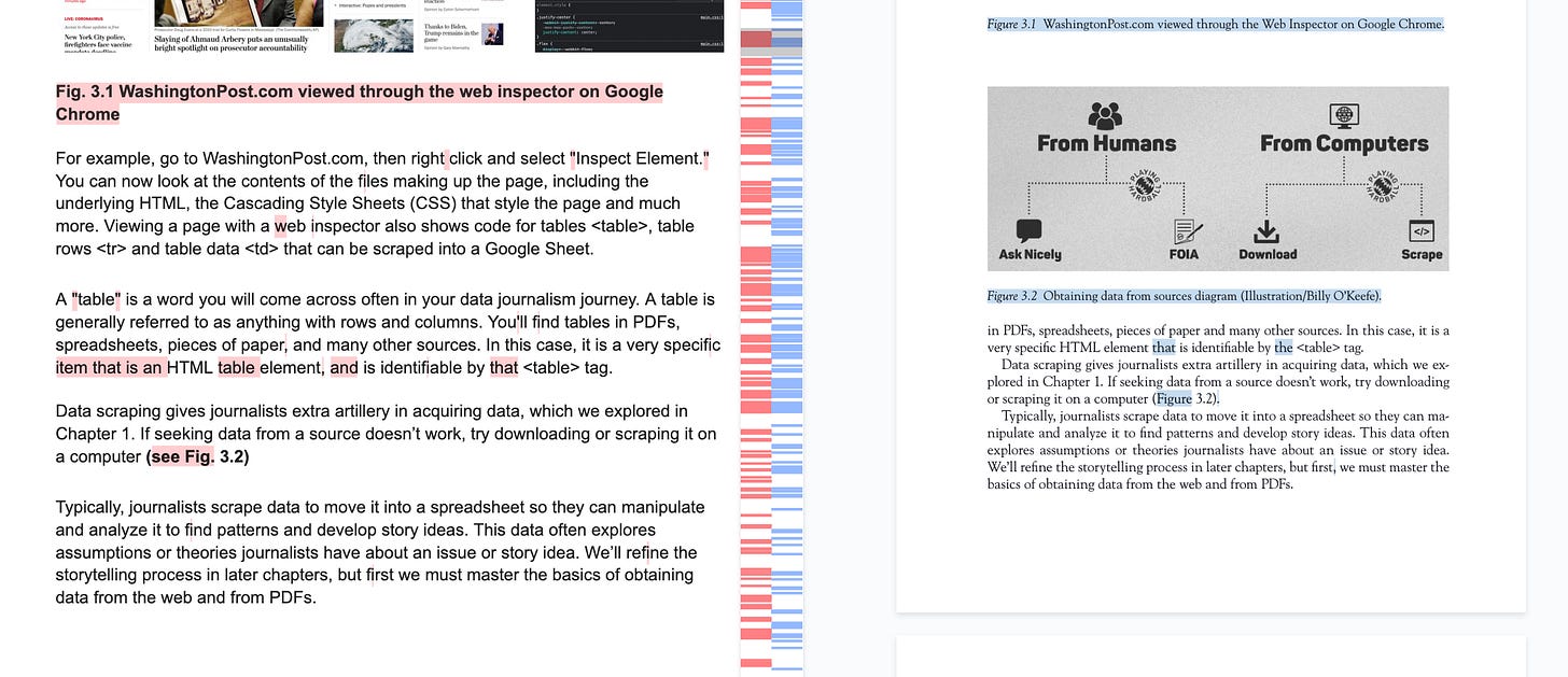I’m updating my data journalism textbook for a second edition, which means I need to make sure I’m editing the most recent version. I started by scanning a chapter, then spot-checking, then realizing I should probably use a computer for this.
